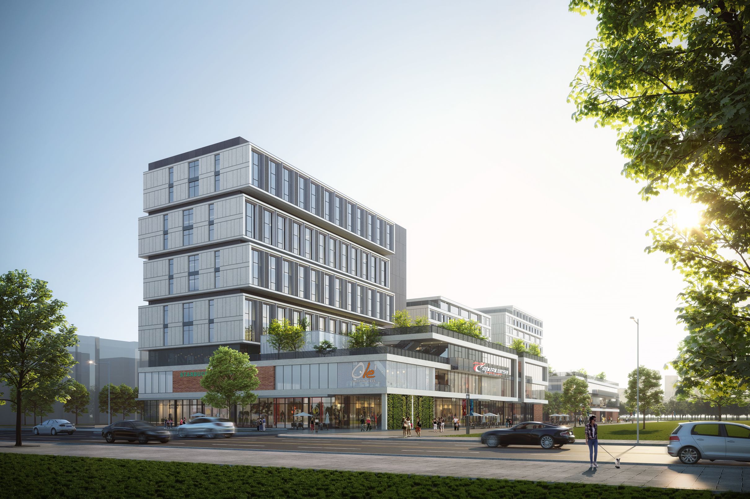 项目地块位于合肥市蜀山区,二环中心地段,周边商圈成熟,项目地块为十分规整的长方形。场区内现有四栋工业厂房,一栋食堂,一栋综合办公楼,内部结构完好。方案利用空间手段充分延续城市历史轴线,利用建筑构件元素拼接塑造特色街区,塑造地标形成易识别的区域形象。