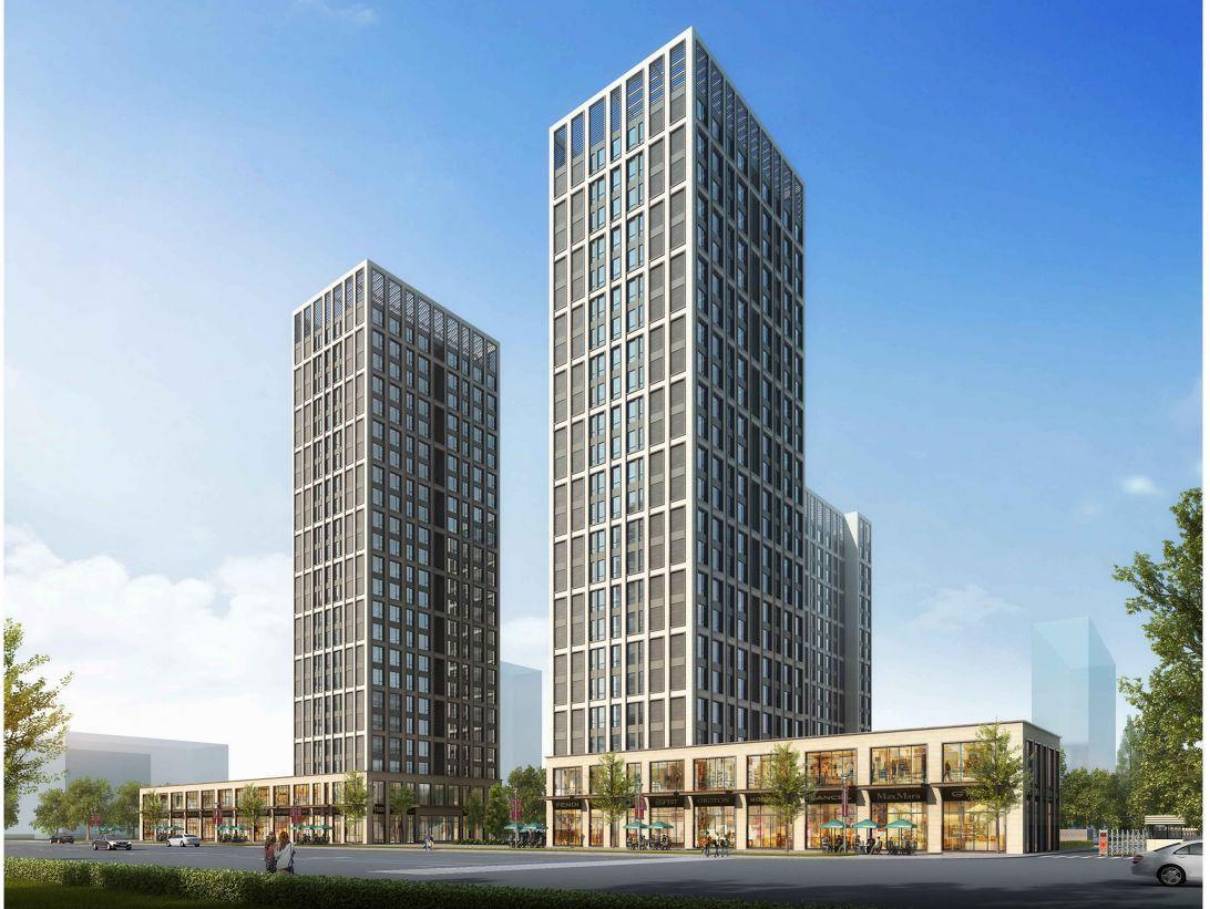 本项目位于马鞍山市雨山区江东大道与采秣东路交叉口,地块西侧沿着江东大道布置一排 2F 的商务,沿街并排布置 23F 的写字楼,地块内部布置 17F 写字楼各功能组团通过机动车道路有机的联系在一起。