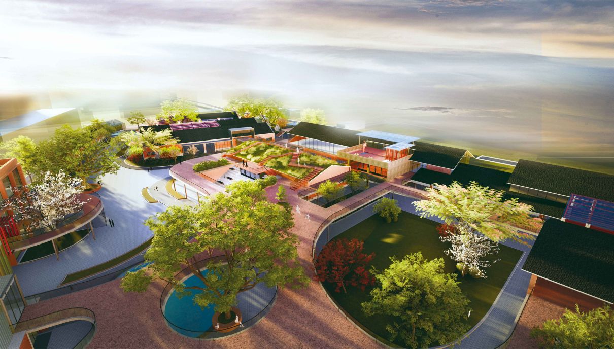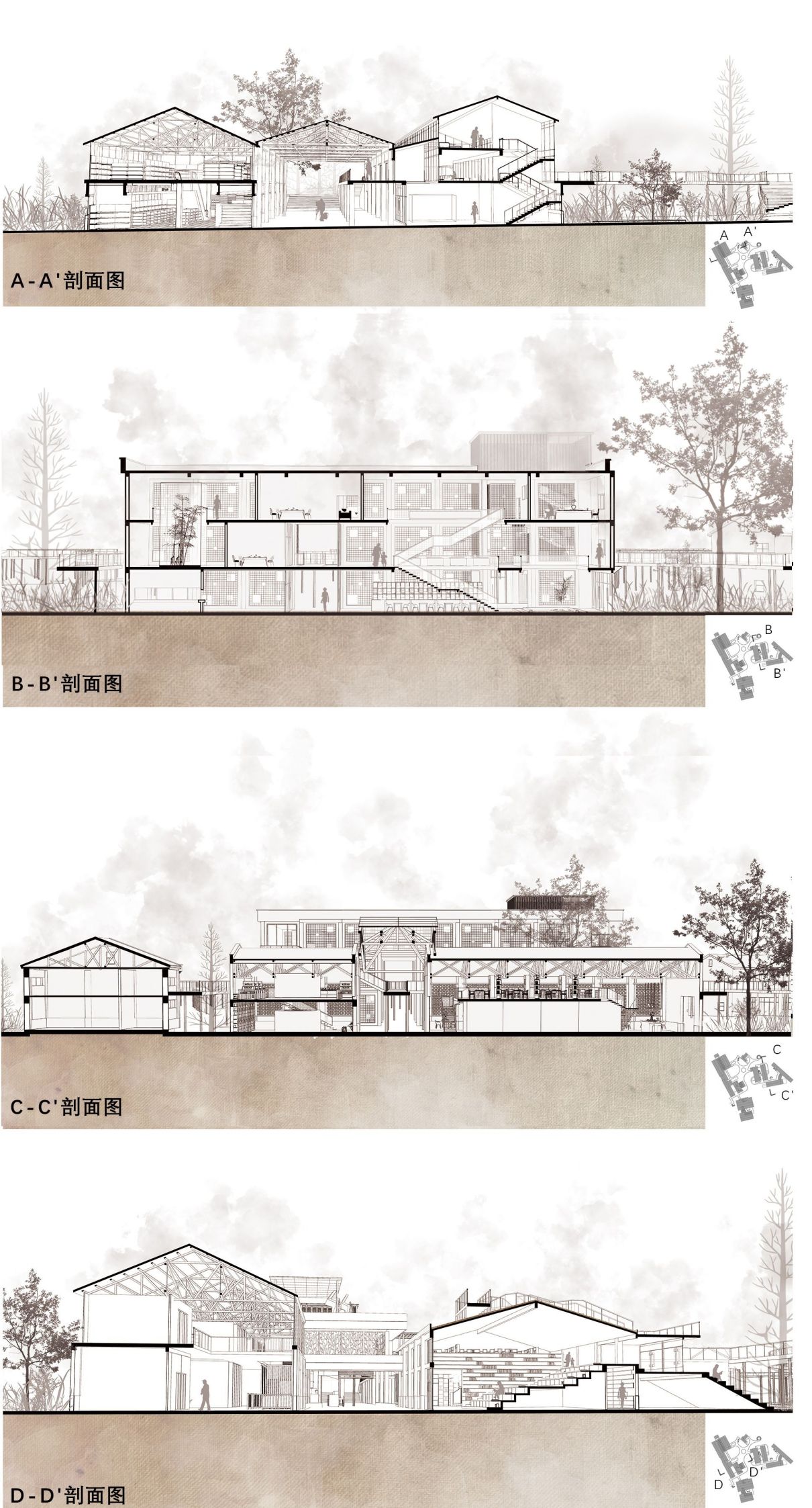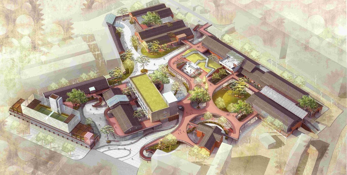 Environmental strategy: Retain the original trees of the site, make full use of the second floor corridor and roof to form three-dimensional greening, and design the rainwater collection system to create a rain garden.