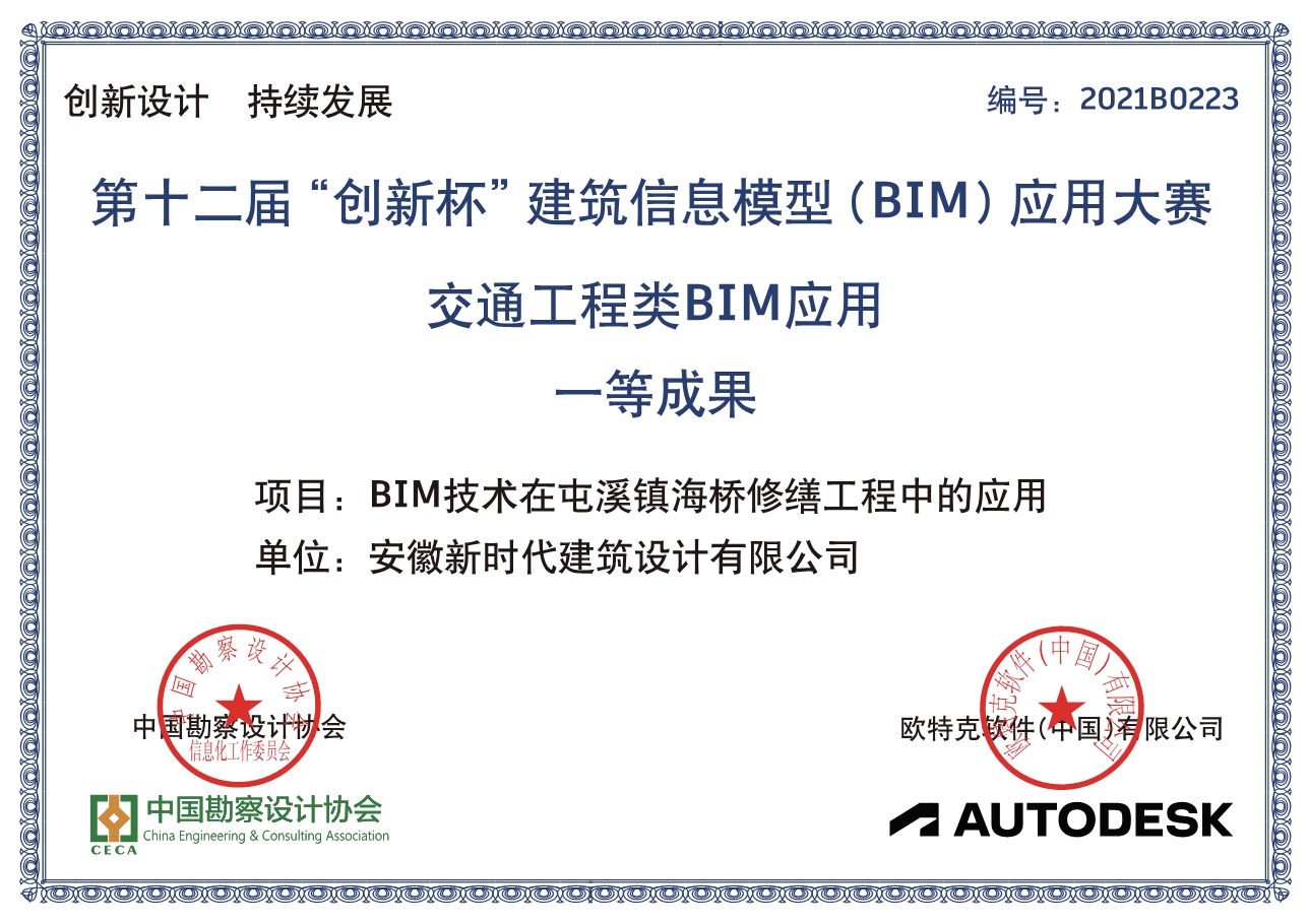 由我公司BIM团队设计完成的黄山市屯溪镇海桥修缮工程项目,在此次大赛评选中,荣获交通工程类BIM应用一等成果!