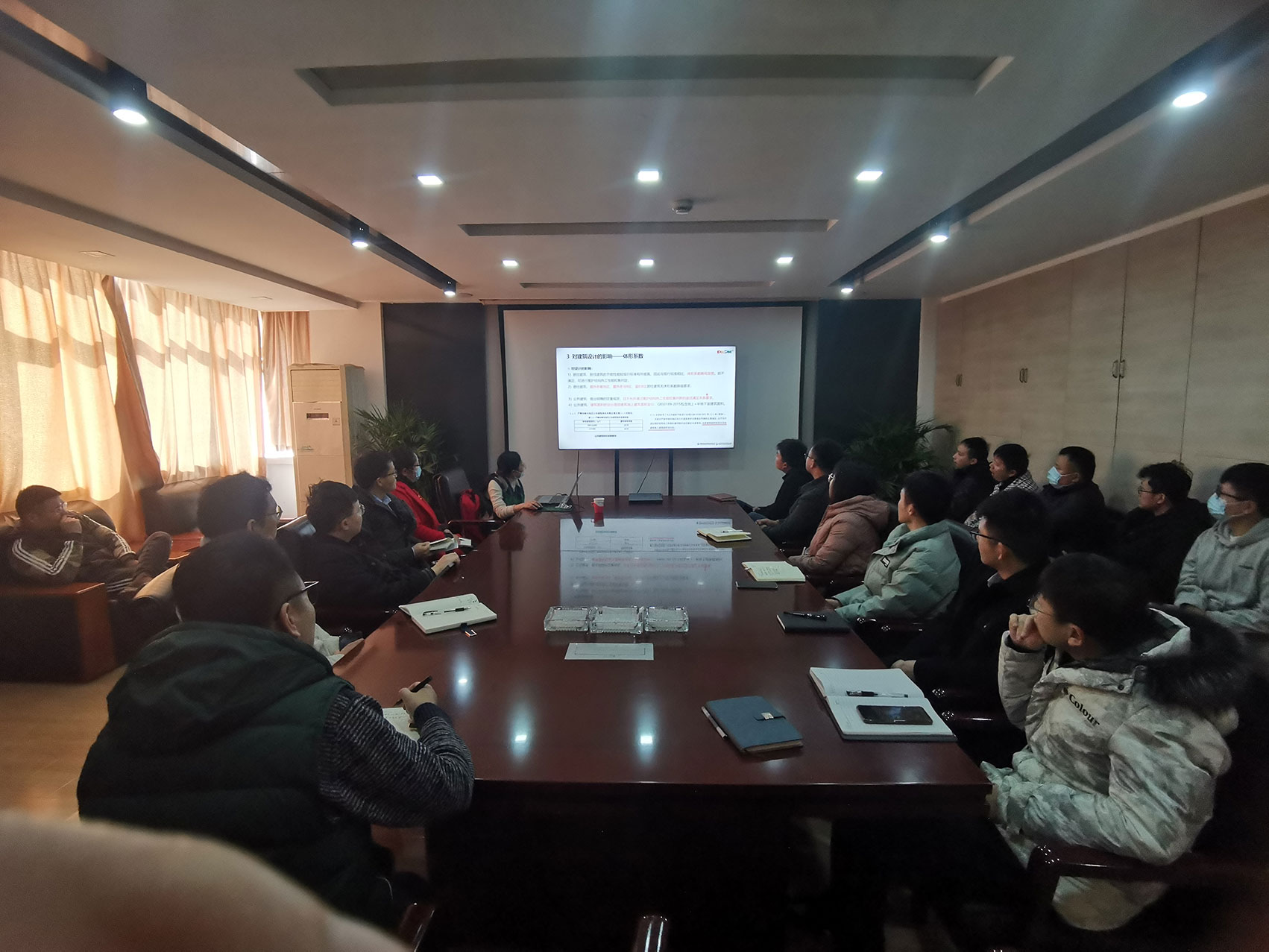 3月24日上午9点半,我公司邀请中国建筑科学研究院有限公司和北京构力科技有限公司的专业技术人员开展专题培训。培训内容为建筑节能全文强制标准(GB 55015-2021)对设计的影响和碳排放计算两方面内容展开,公司建筑一院、方案创作中心、数字工业化与数字建造研究院、人防设计院、建筑二院等部门的建筑专业技术人员踊跃参加,认真学习,仔细记录。