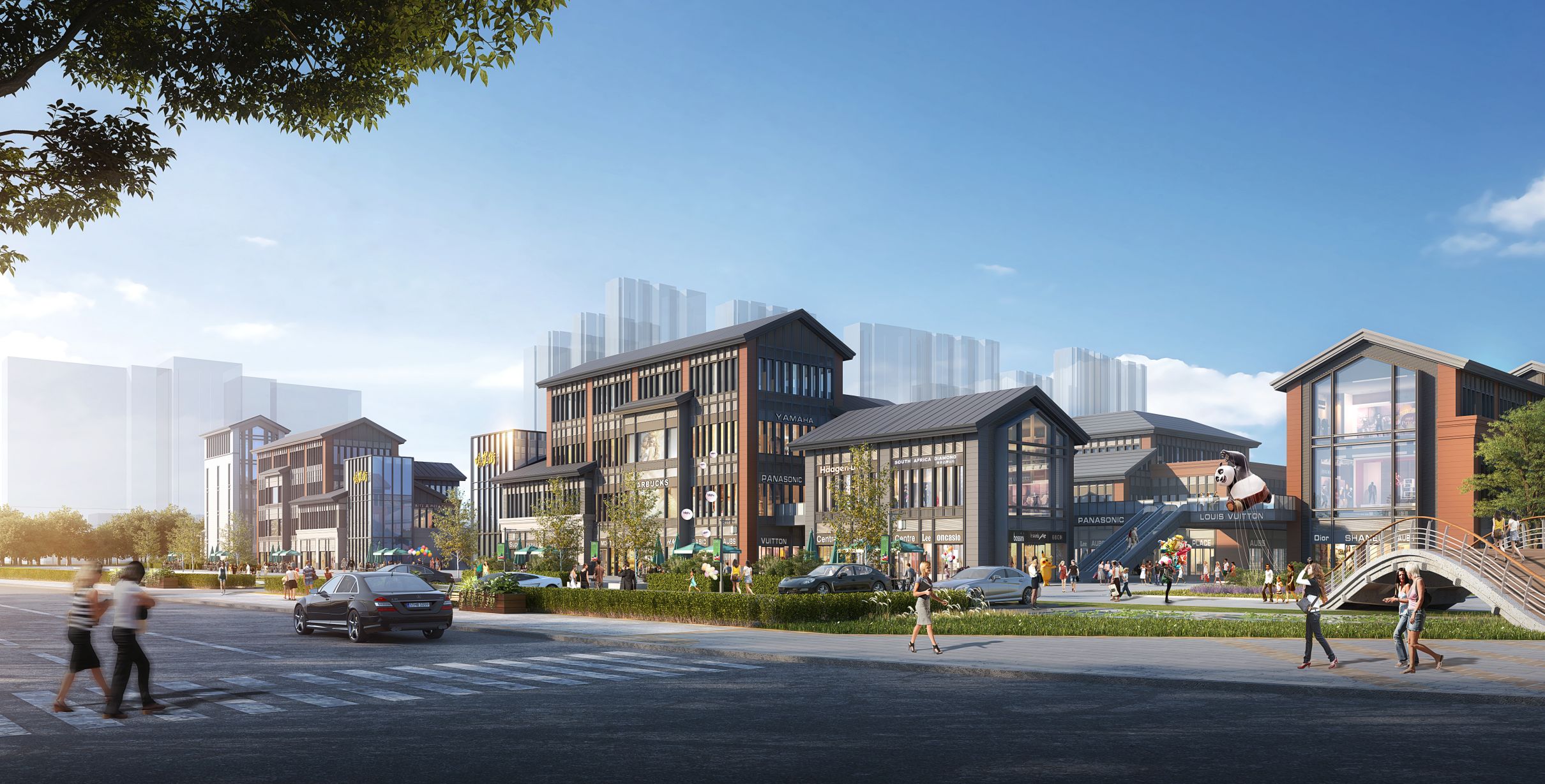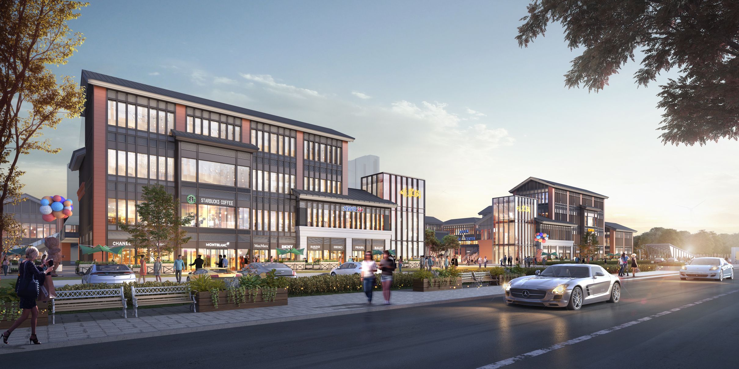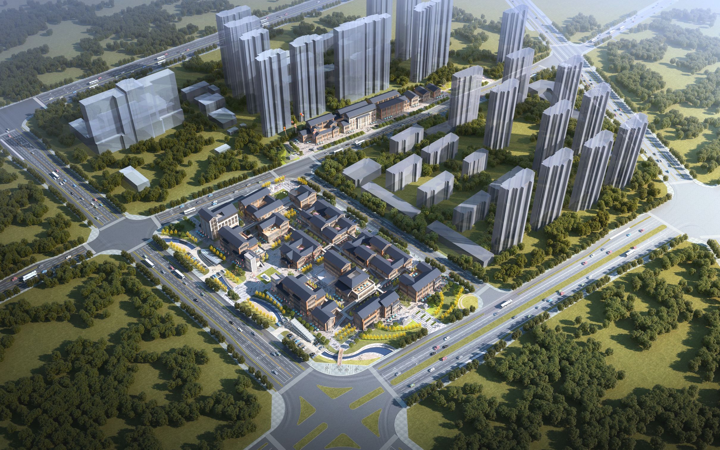 本项目紧邻的花桥路为传统商业带,商业潜力巨大,交通便捷,区位优势明显。本项目设计旨在以“共生”理念为理论依据,并将其注入到作品中,传统与现代的融合共生,商业建筑与自然环境的和谐共生,人与环境的共生。
