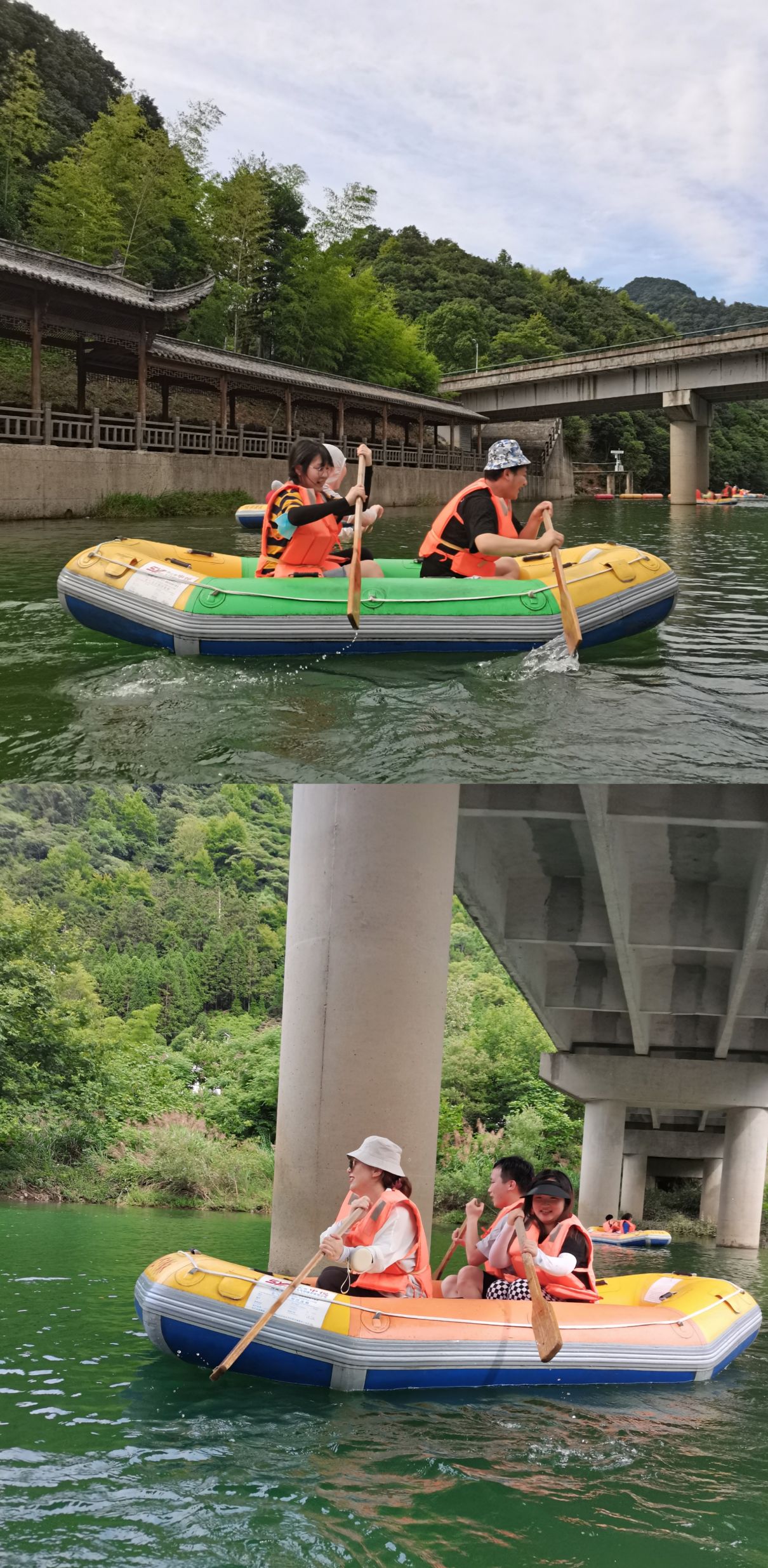 下午3点进行我们此次行程的第二站-怪潭峡谷冲浪漂流,怪潭漂流全程约4公里,有冲浪滑道两处,激流险滩五道,水绕山转,山贯水行。虽然炎炎夏日,但在这期间,大家不仅进行一场与水的亲密接触,解暑清爽,也欣赏了秋浦河两岸如画的风光。