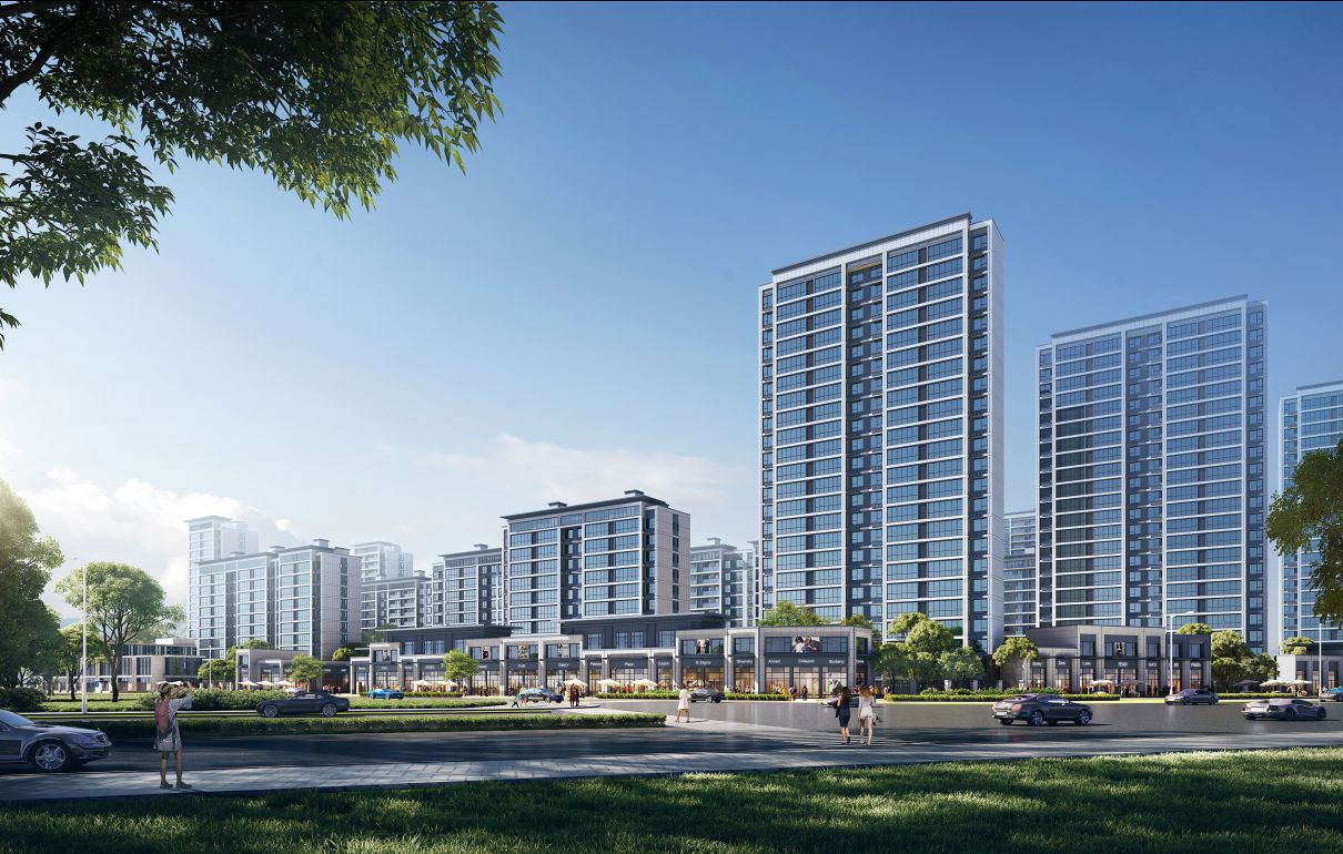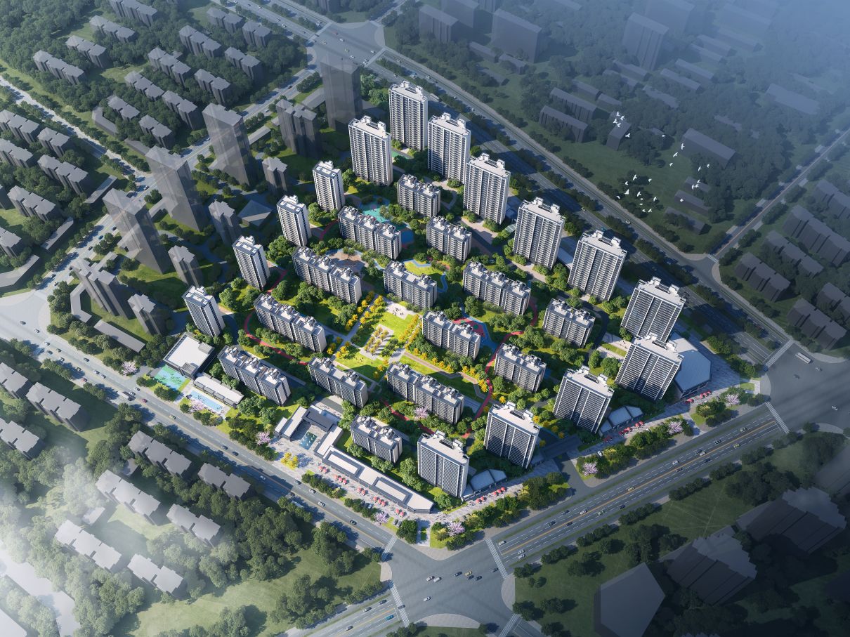 本项目位于舒城县核心地段,地块南侧紧邻万达广场,拥有先天区位优势条件。配套商业沿周瑜大道、龙津大道与花桥路布局,面对消费群体。住宅向内布局,营造静谧氛围。同时外围布置高层、内部布置洋房的设计策略有助于打造高品质、生态宜人、绿色宜居的生态社区。