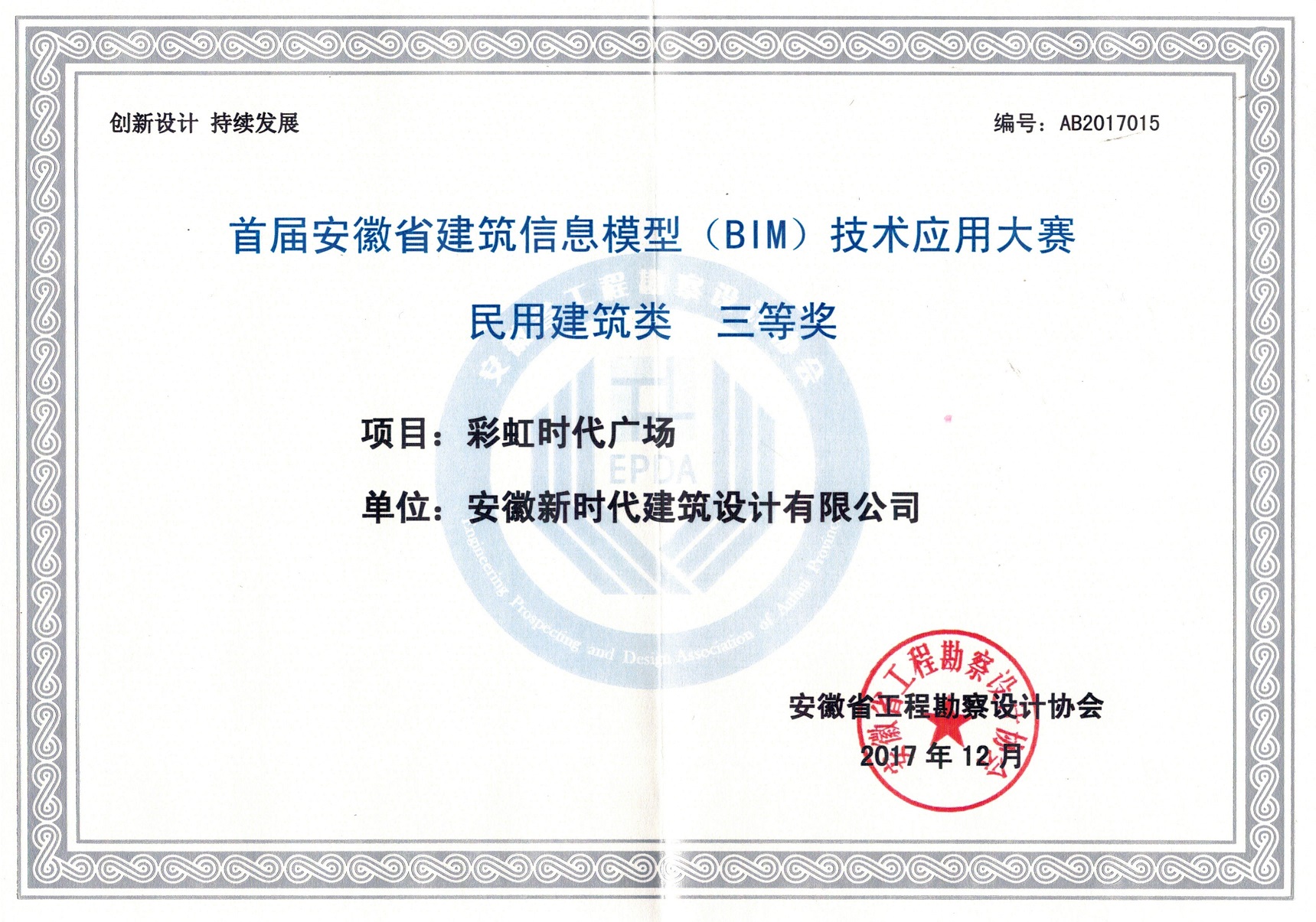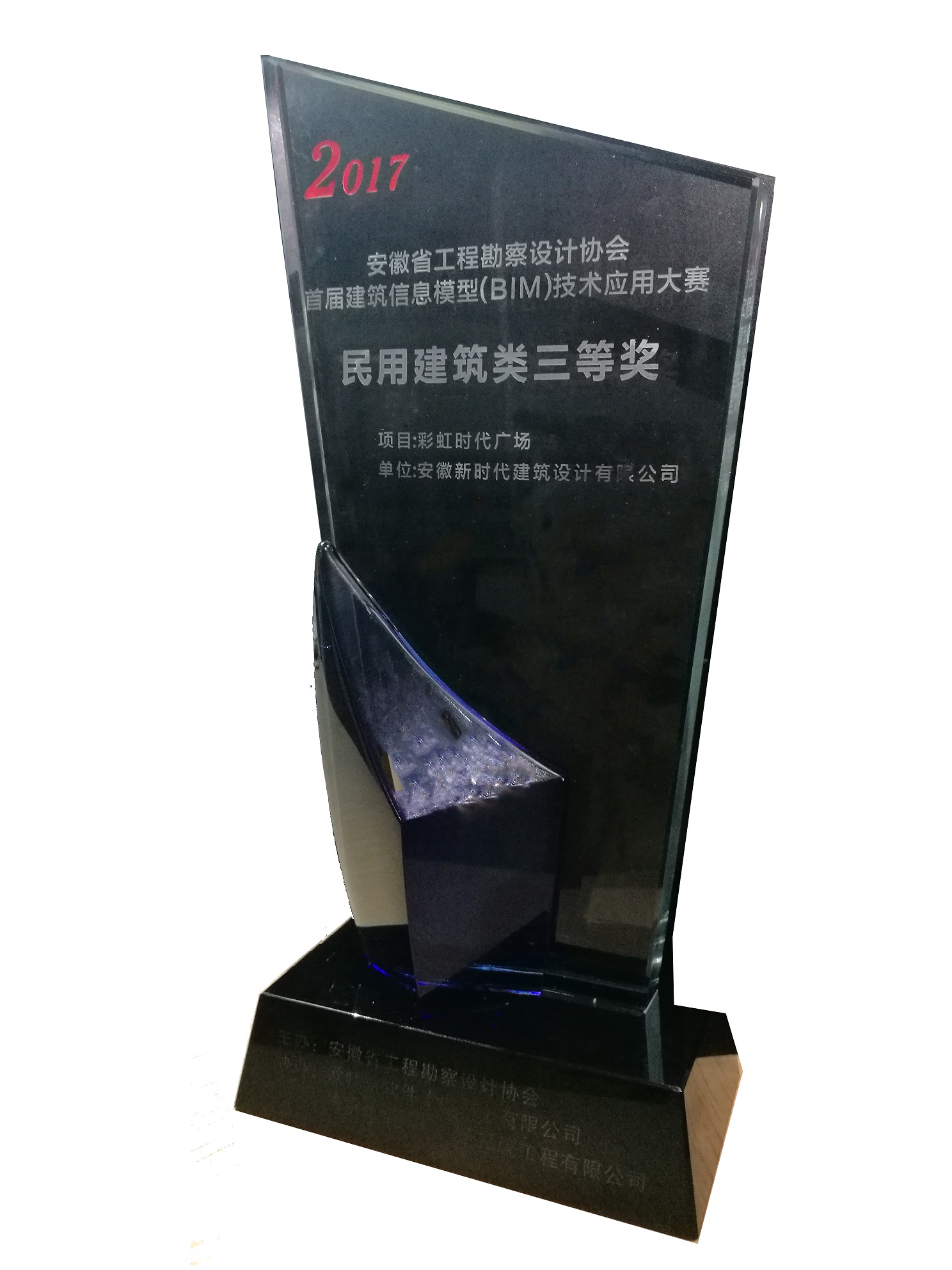 会议表彰了首届安徽省建筑信息模型(BIM)技术应用大赛的获奖项目,我公司彩虹时代广场项目获得大赛民用建筑类三等奖,陈兆云代表公司领奖。